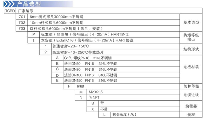 導(dǎo)波雷達(dá)物位計(jì)TCRD701訂貨需知